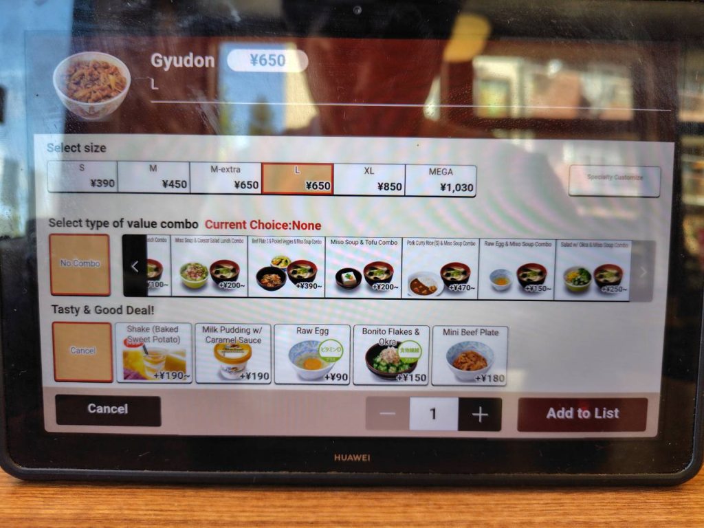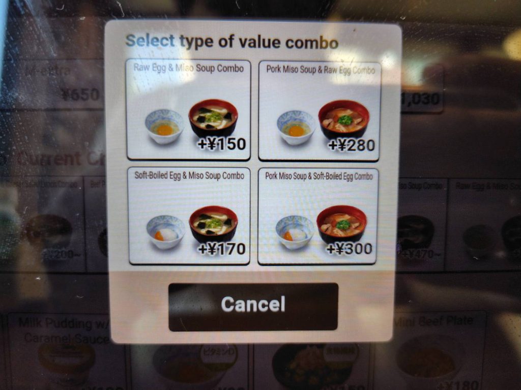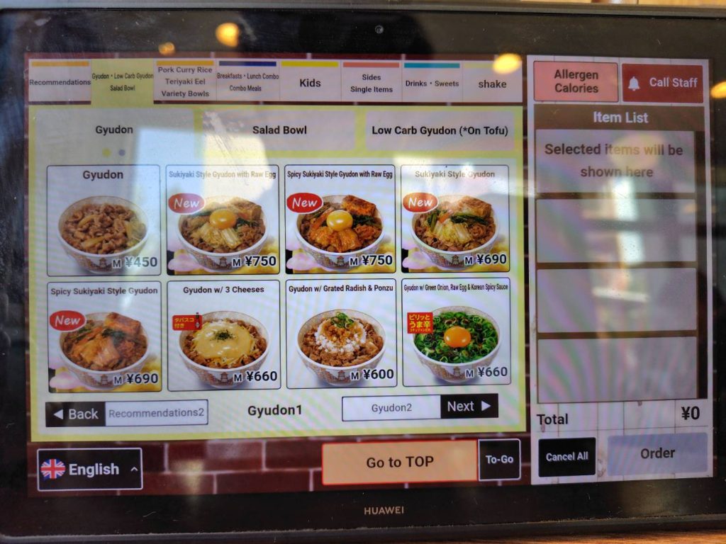 Ordering is a breeze with Sukiya’s touch-panel system, which offers English language options. This makes it super easy for international travelers to choose their meal without any hassle.