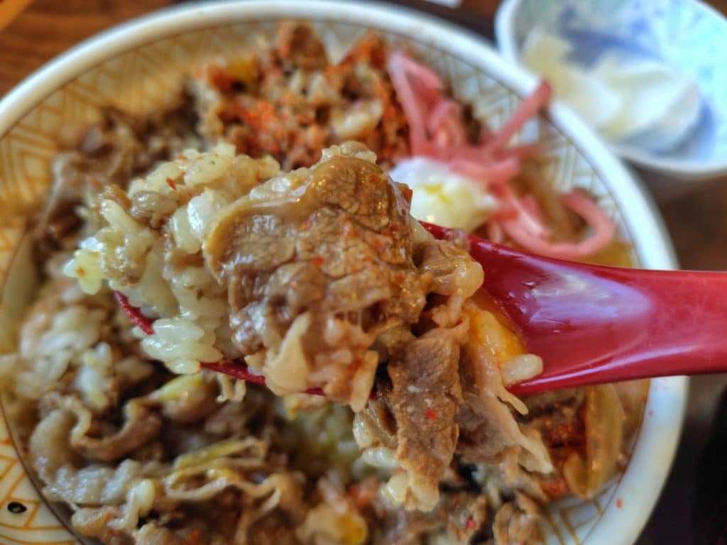 Gyudon can be tricky to eat with chopsticks, even for locals. Using a spoon makes it easier to scoop up the rice and beef together, ensuring a stress-free and enjoyable meal. It’s a popular choice among Japanese diners too!