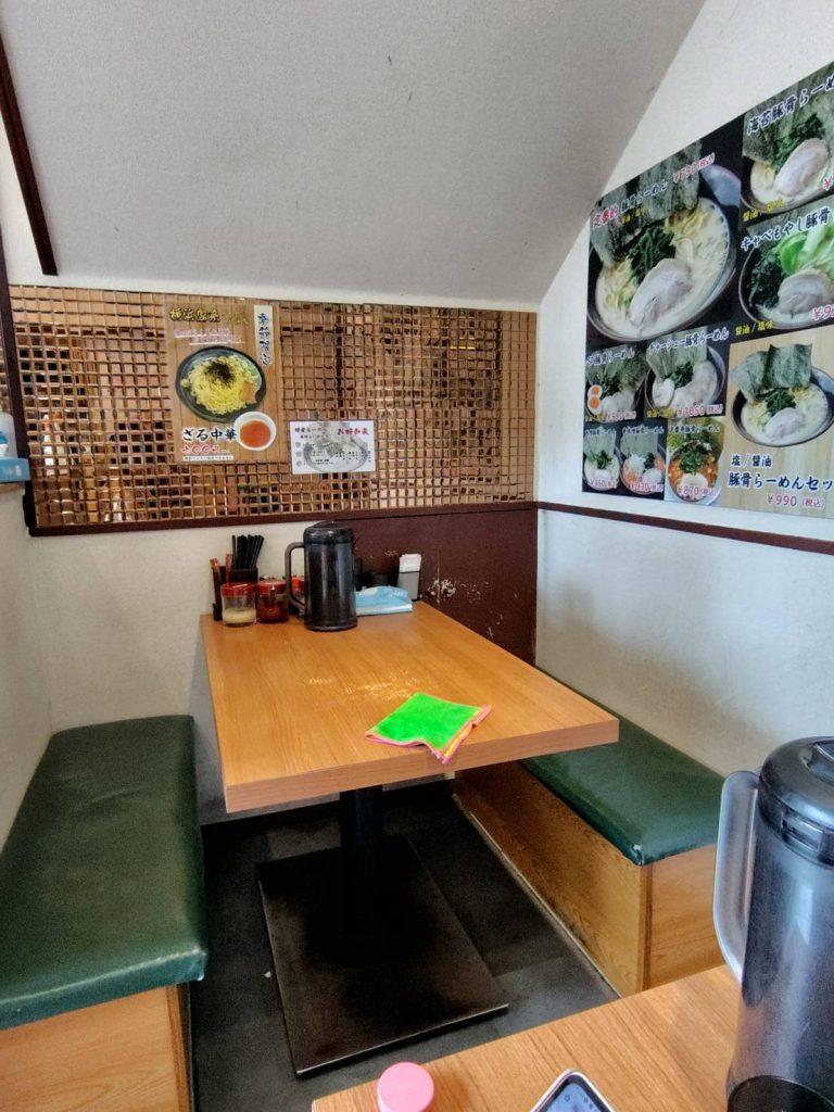 The interior is cozy and compact, with two table seats and five counter seats, creating a warm and bustling atmosphere. Orders are placed by purchasing a ticket from a vending machine at the entrance. The menu primarily features two types of ramen: soy sauce pork-bone (shoyu tonkotsu) and salt pork-bone (shio tonkotsu), both boasting deeply flavorful broths.